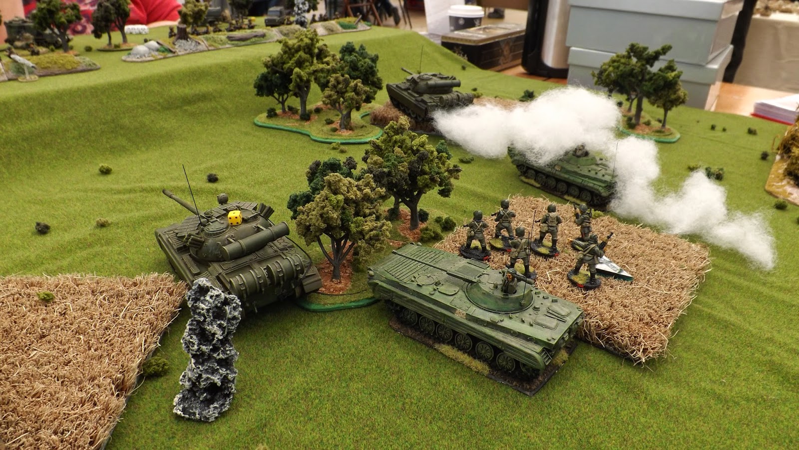 And last but by no means least, Jason and Nathan turning the Cold War hot with their modern Chain of Command game. I love the Carl Gustav rocket streaking out towards that Soviet armour. Nice work Jason