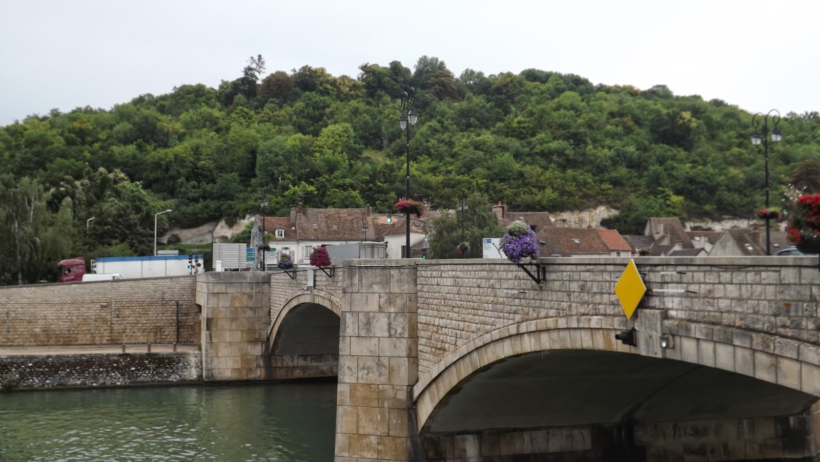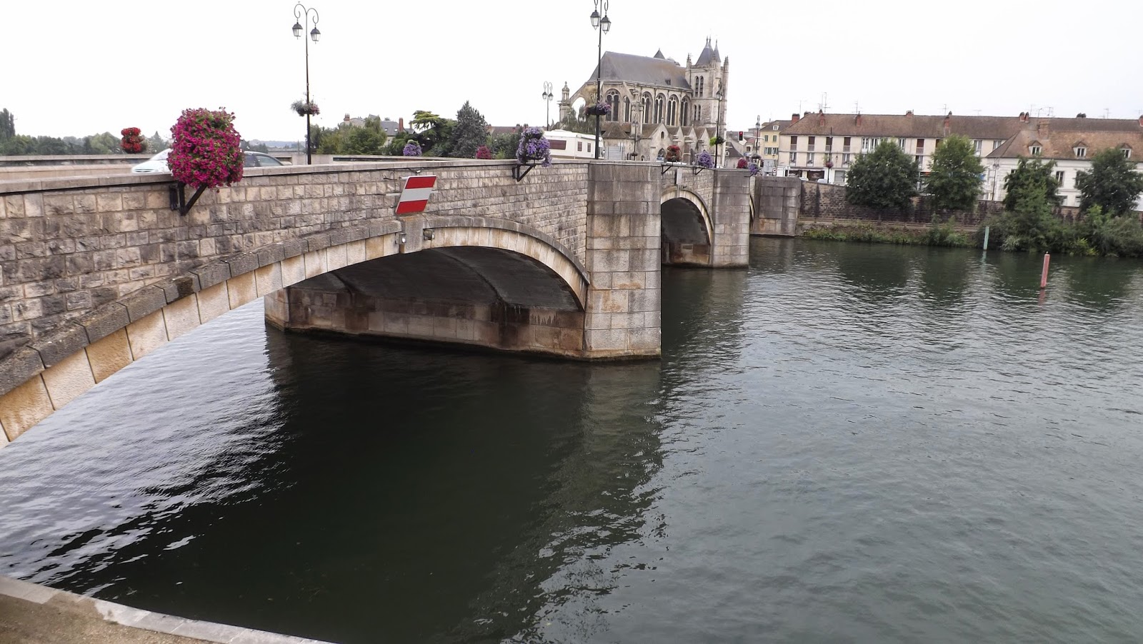 | The bridge over the Yonne with the church captured in Langlois picture in the background |