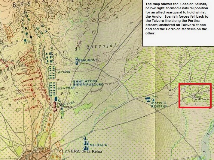 So the first scenario to be played is the small rear guard skirmish that occurred at Casa de Salinas as Wellesley covered the withdrawal of Cuesta's army onto the Talavera position. Sir William Napier in his "English Battles and Sieges of the Peninsula" summed up the clash,