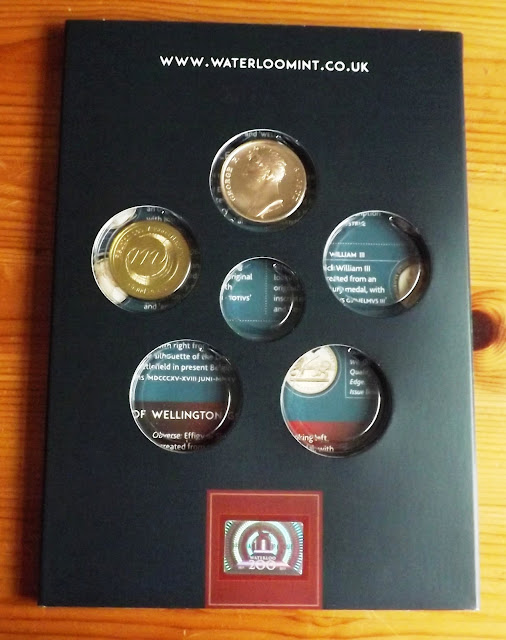 I just thought I would add a postscript to this series of "Waterloo 200" posts, to highlight the nice little offer that the Royal Mint here in the UK came up with for this important commemoration. Each postcode address was entitled to receive a free bronze Waterloo Campaign Medal, which is a really nice keep sake for the bicentenary year and I thought I would show you what it looks like together with my Napoleon medal that I bought at La Malmaison earlier this year.