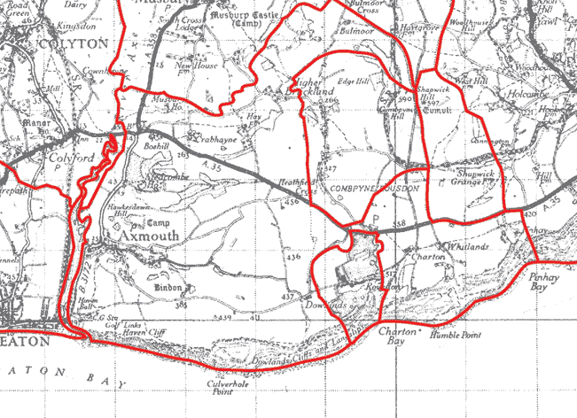 | Old Parish map showing the remains of the pre -Roman hill fort on Hawkesdown Hill above Axmouth |