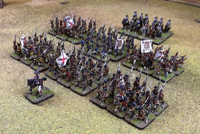 The immediate work is set focused on completing the remaining ten battalions of French line infantry whilst developing and testing the Pajar Vergara scenario as we go. Then it will be on to the remaining Spanish units, namely the seven battalions of infantry in General Bassecourt's division and the five regiments of Spanish cavalry in General Albuquerque's division, both of which took post at the end of the northern valley during the afternoon attack. These three groups of figures plus a few supernumeraries in the form of general officers and artillery limbers will take the best part of the year to complete.