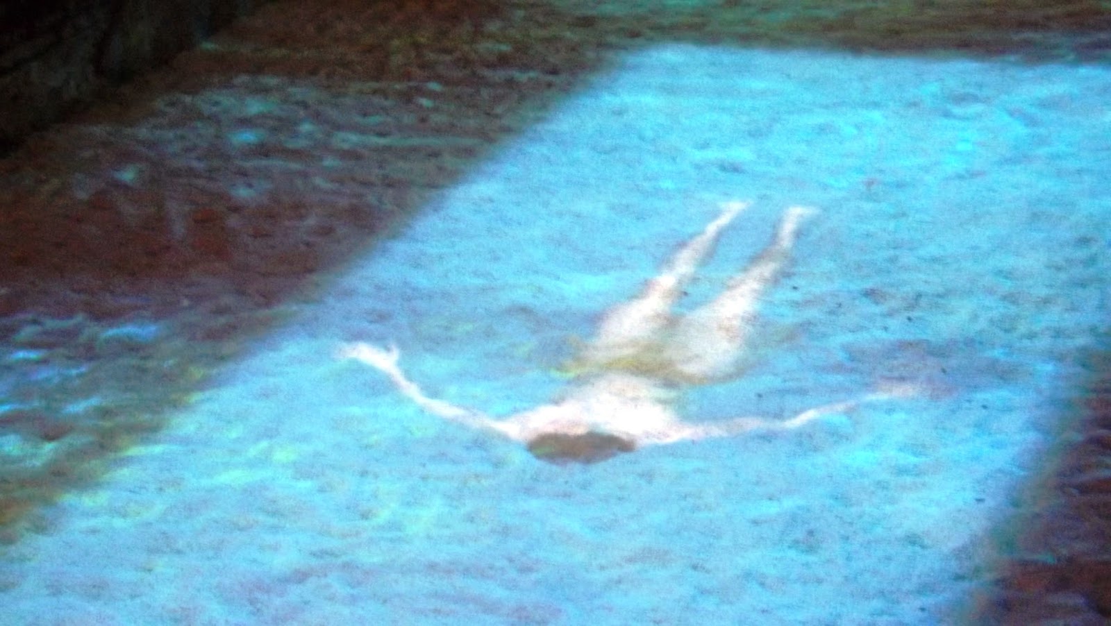 | The remains of the open air pool as seen in the illustration above with a lighting effect to simulate water |
