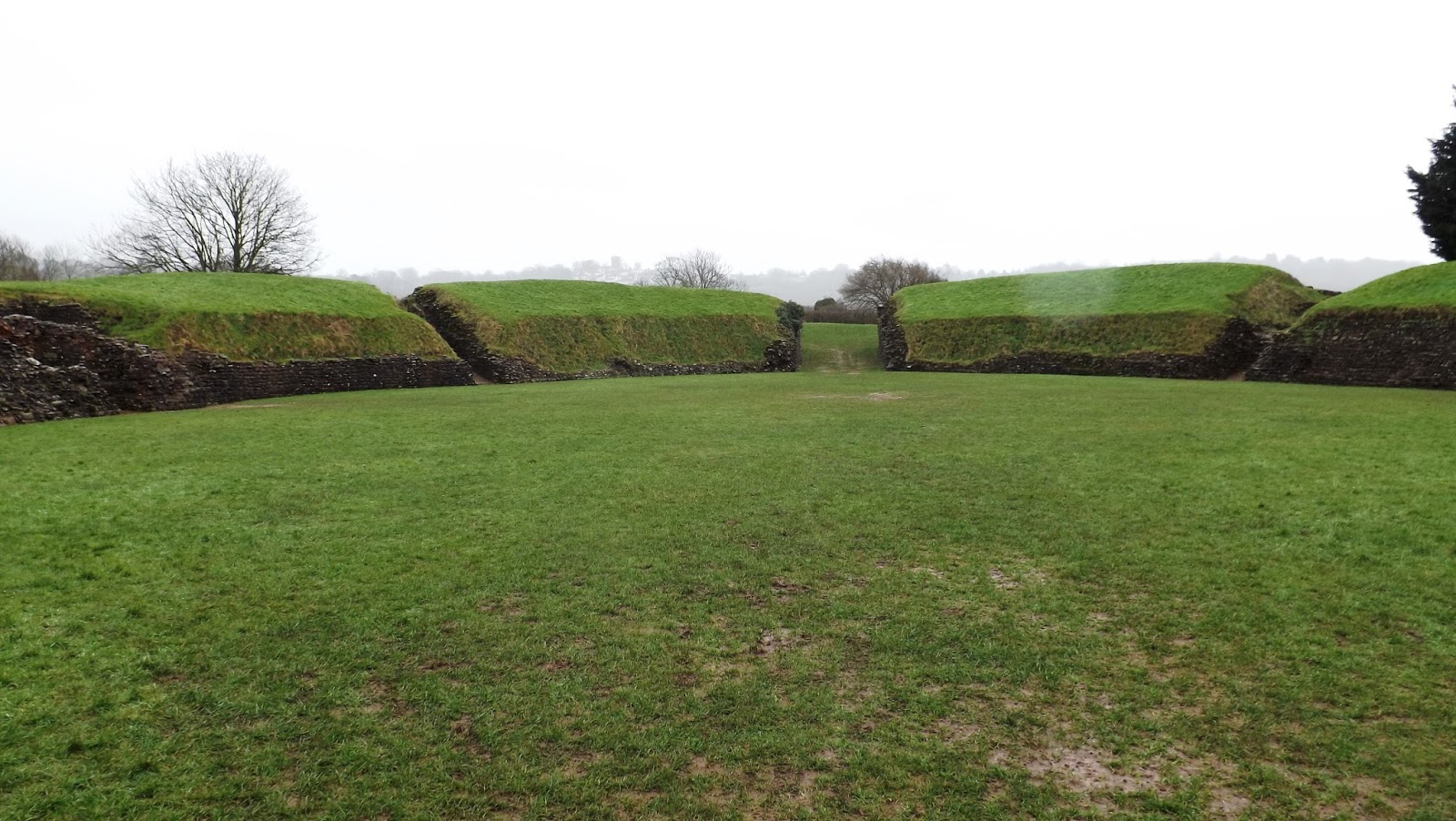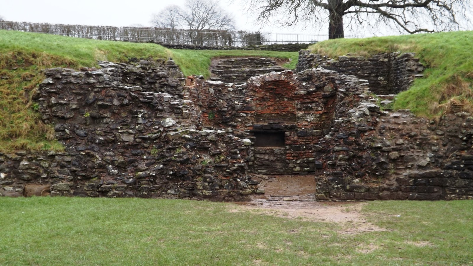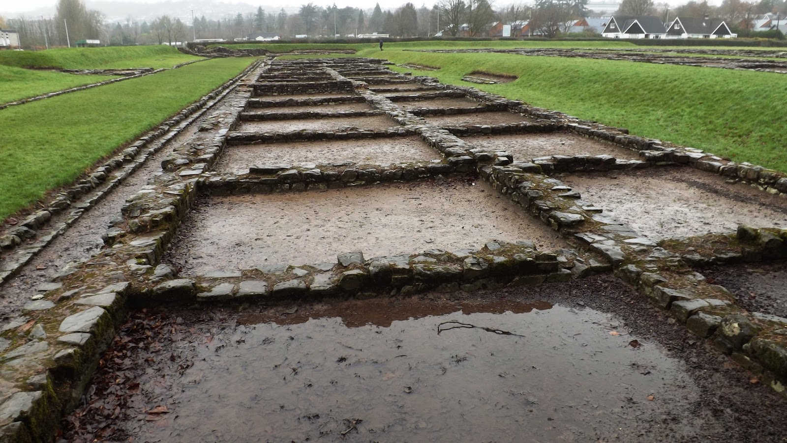 We arrived in Caerleon on a very wet Sunday, though thankfully not as wet as the Saturday where we dashed between shops in Cardiff in driving wind and rain. I wonder if the II Augusta were treated to similar weather when they got down to constructing the first level of defence for their new base.