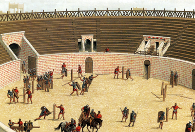 | Impression of the Caerleon Amphitheatre by John Banbury |