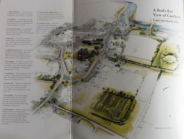 | The map illustration of Caerleon today and the Roman related sites dotted around the town is taken from my excellent guide book purchased in the museum. |