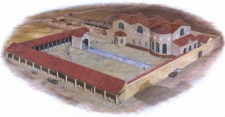 | Impression of the fortress bath complex as it may have appeared in 80 AD - Paul Jenkins, National Museum of Wales |