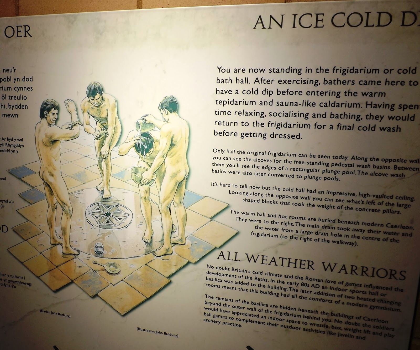 The construction of the baths began around 75-77 AD, about the same time as the fortress itself and the vaulted concrete main building would have towered over the other buildings and compares to medieval cathedrals such as that at Wells in Somerset for the footprint and height of the hall and vaulted ceiling.