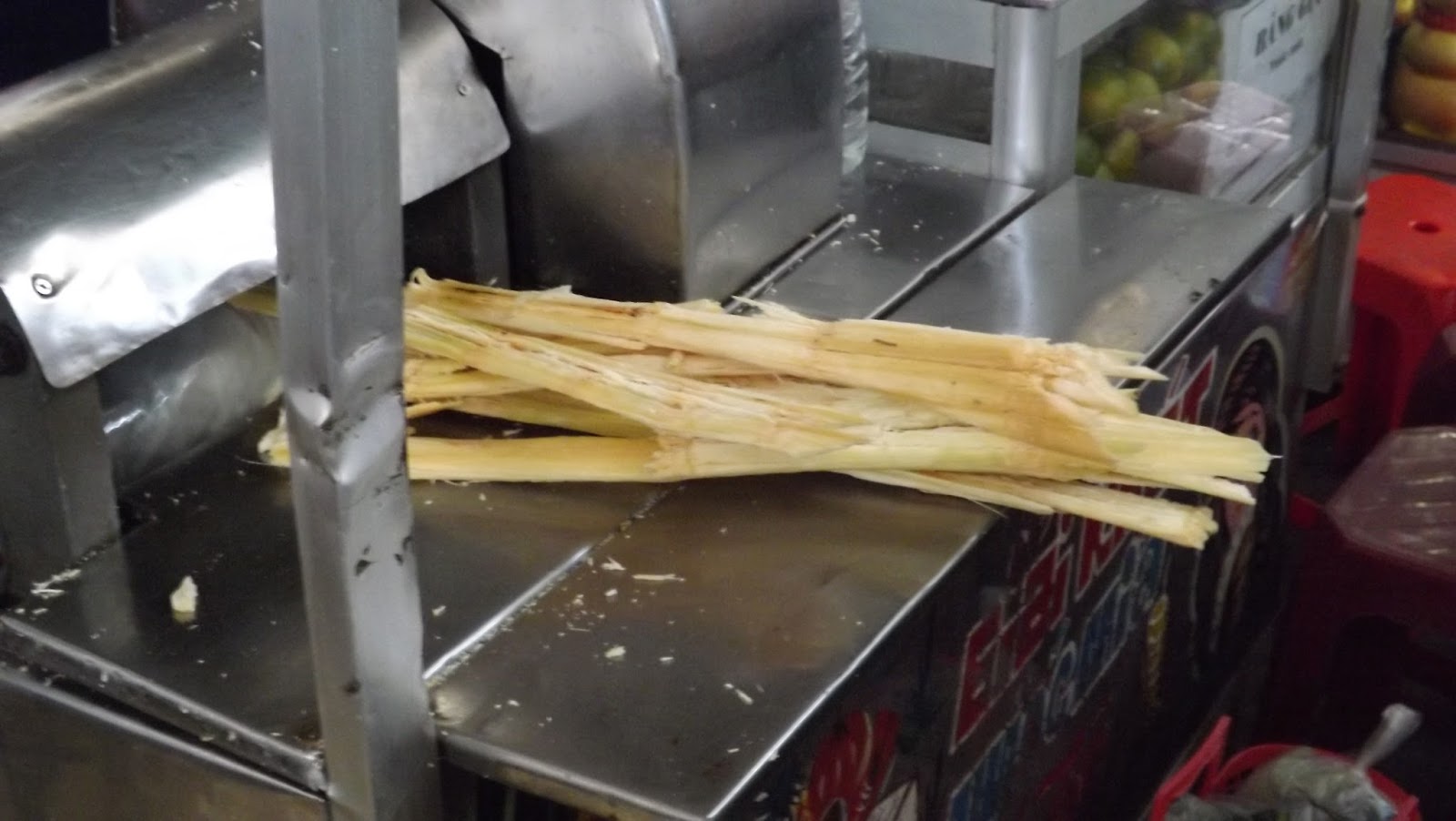 Raw sugarcane used to prepare the sugarcane iced juice that refreshed and cooled us on our way round the market