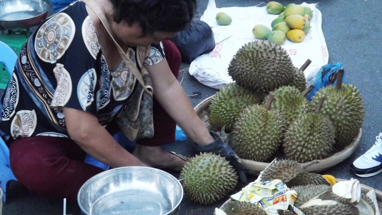 Needless to say on our way through the market we made a beeline for this item and after getting the market vendor to confirm the one selected was ripe and edible, we took it back to the restaurant to try.