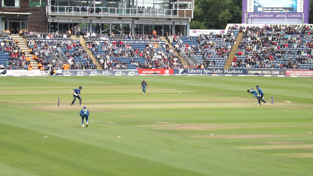 So Saturday, Carolyn Will and myself travelled up to Cardiff in the company of "Mr Steve" and Steve M, together with one of Will's pals Jos, who also enjoy the sound of leather on willow, to watch the final match in the one day international series versus Sri Lanka.