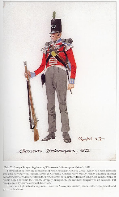I decided to read 'A History of the Chasseurs Britanniques Regiment' (CB) as I was acutely aware that as a student of the Peninsular War and Wellington's army in particular, this originally French emigre regiment had passed my scrutiny and I only had a basic knowledge centered on all the established clichés from Oman and others about its high rates of desertion.
