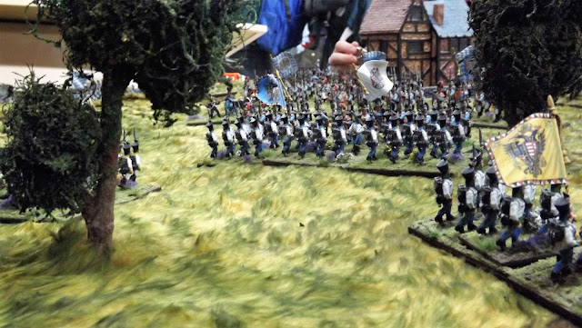 Having just reviewed and enjoyed our own game of 'Over the Hills' Napoleonic rules it was a pleasure to meet the authors in person, Adrian McWalter and Quinton Dalton, putting on this Austrian vs Bavarian display game.
