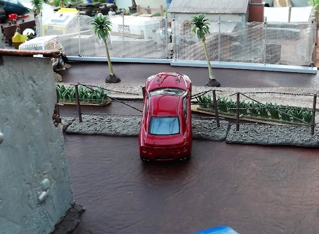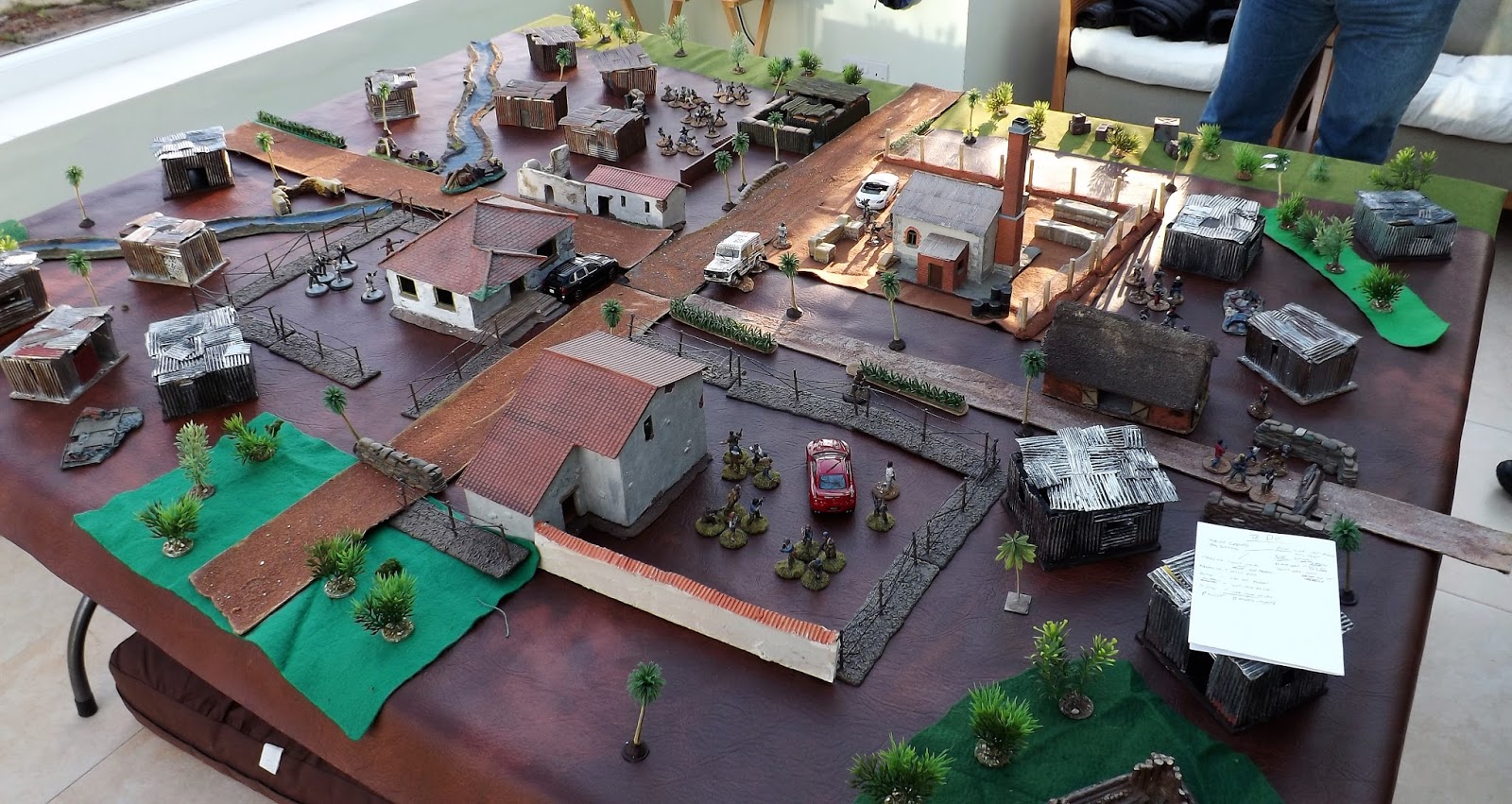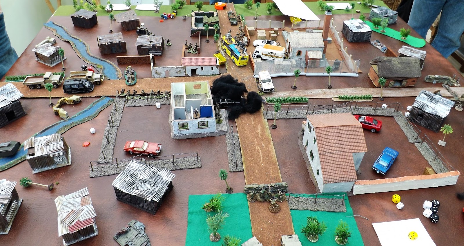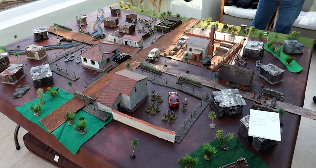 Our cast of characters were (Chas) our host and gamemeister for the day, (Mr Steve M) General officer commanding the Presidential Guard, a perfect choice being ex Royal Marines. Just see the way his troops patrol into town; you never forget the training. (Nathan) as General Juan Carlos Fernando, our ruthless killing machine and Abba fan, (Tom) the youngest member of the cast led the enthusiastic if somewhat unskilled North and South Boy street gangs who made up for their inability to shoot straight with pure numbers, (Clive) Comrade Che, the special one, the leader of the Communist FARC faction in the country, a skillful, artful politician breaking into the world of kidnapping and narco-economics designed to drive his political ambitions, but as we shall see a terrible driver, all though he blames his girlfriend, I mean secretary; and last but by no means least Vince who played the role of Felix Leiter our man in Venuzcolumolivia, but I can neither confirm or deny that last statement.