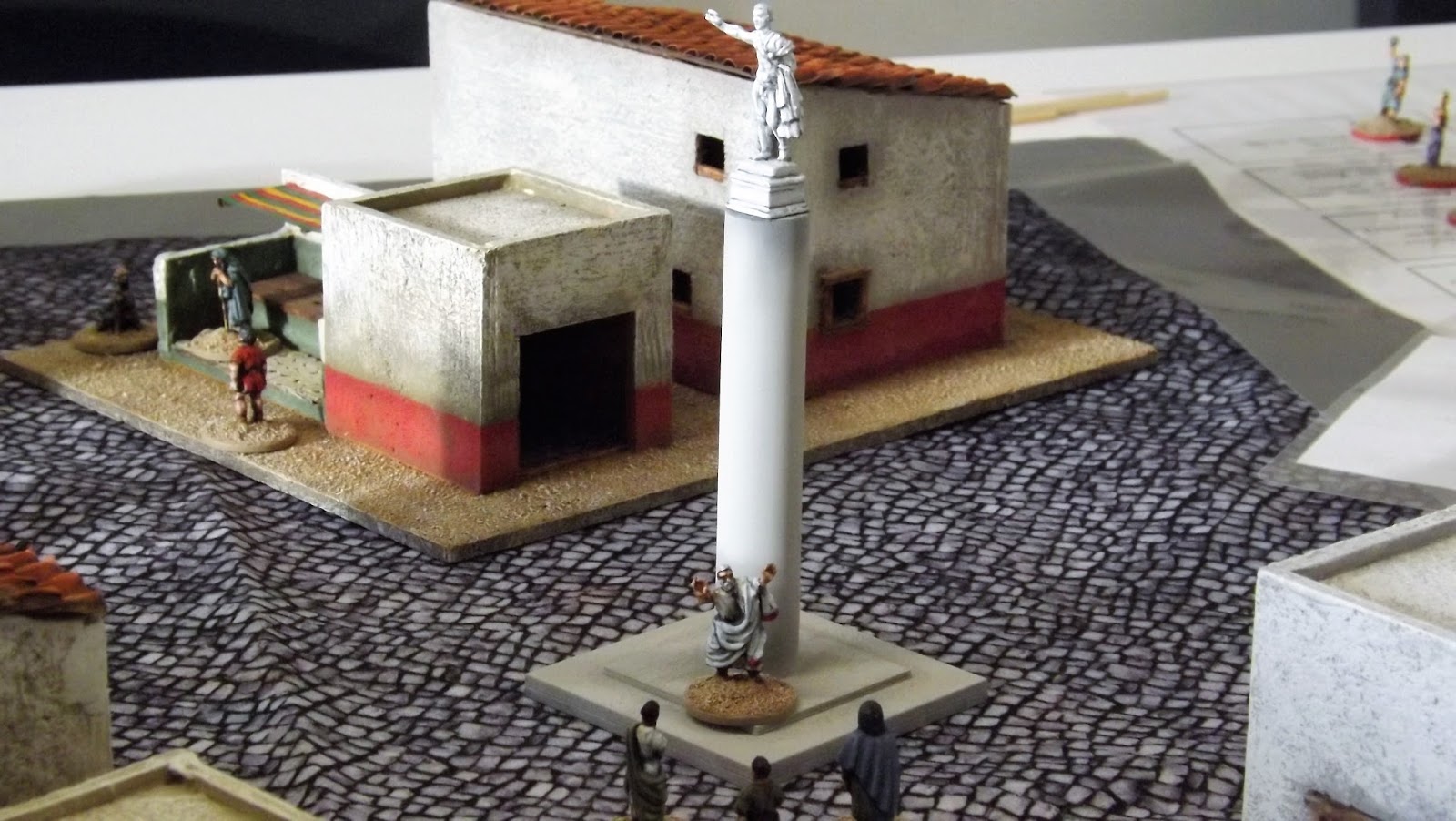 The scratch built buildings with slave market, out-doors communal toilets and an orators stand below the marble statue was a joy to see and set off brilliantly with an appropriate cloth.