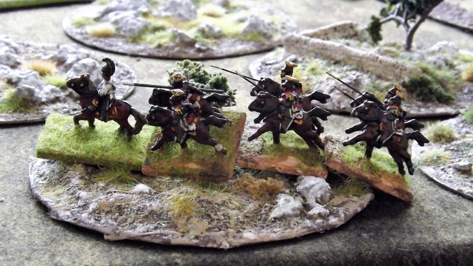 | Those guys with the helmets are Chasseurs a Cheval who donned their new look at Quatre Bras in 1815 |
