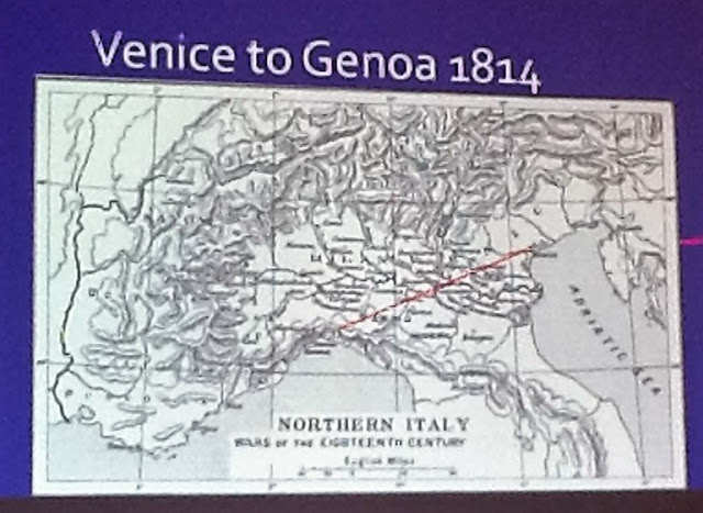 The rather blurred picture of Gareth's initial slide (sorry I was using the IPad to capture these) showing a map of the Mediterranean with red numbered points dotted around to show where the various actions covered occurred.