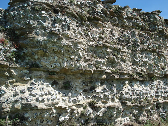 As is usual you only really see the inner core of the walls made up of flint, mortar and tiles