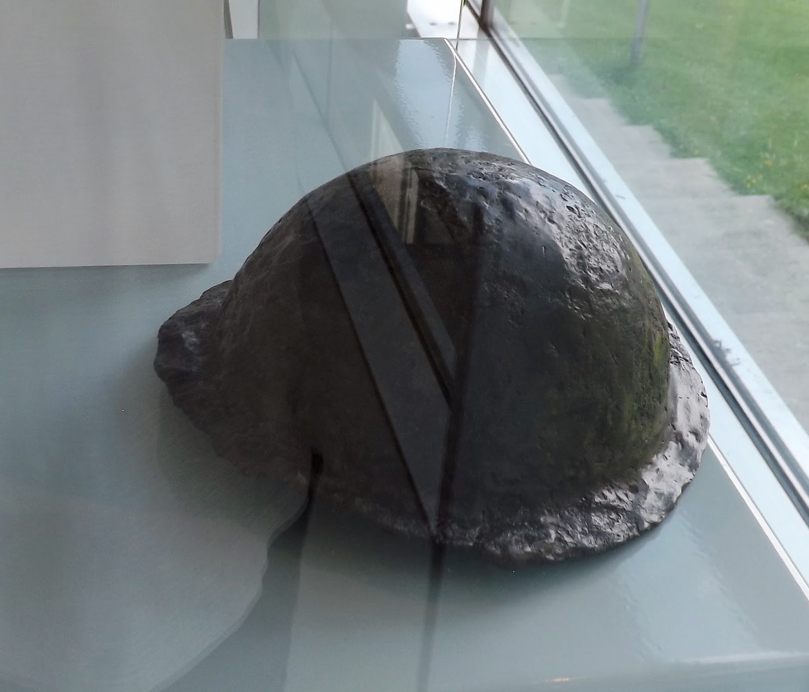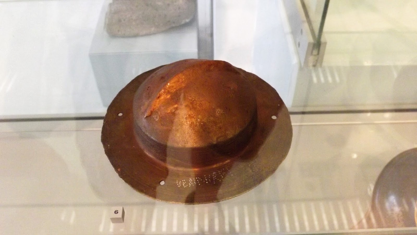This amazingly preserved iron Roman helmet is one of several on display in the Valkhof Museum in Nijmegen and was discovered in the Roman fortress together with the remains of the shield it was buried with, with just the boss and bronze strip applied to the edge of the cross ply wooden shield having survived. This helmet belonged to one of the first Roman soldiers in the country.
