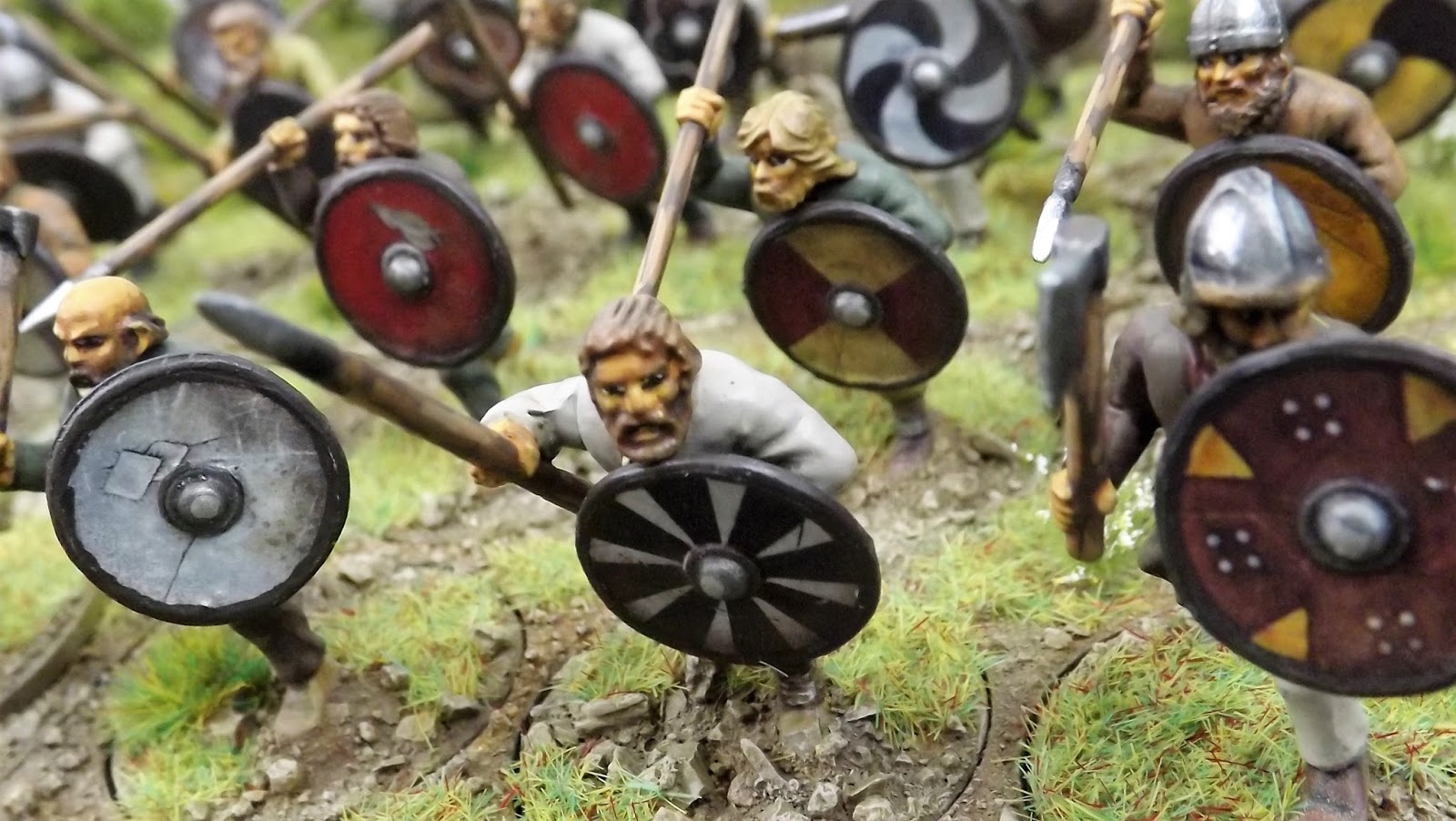 The Gripping Beast Dark Age Warriors allow the collector to amass a relatively generic force of bearded spear carriers that could be found bulking out a lot of the armies of this period and with the addition of a few helmeted and capped heads can be tailored to give a, in this case, Saxon or Viking feel to the force.