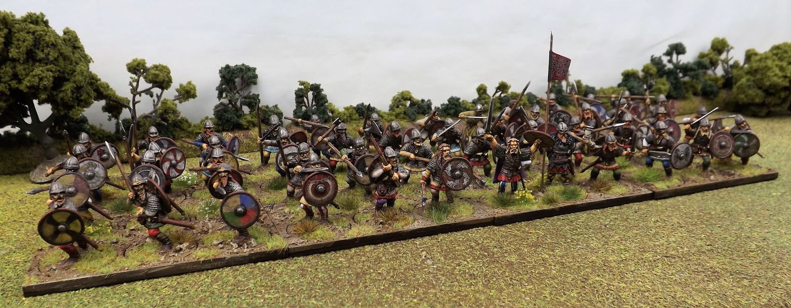 Nice work and a good overall display. It's another bit of inspiration for my own Saxon and Viking project I've just started with the Gripping Beast plastics. Looking at your set up, I'm guessing 25mm round bases and 80mm sabot bases. Cheers.