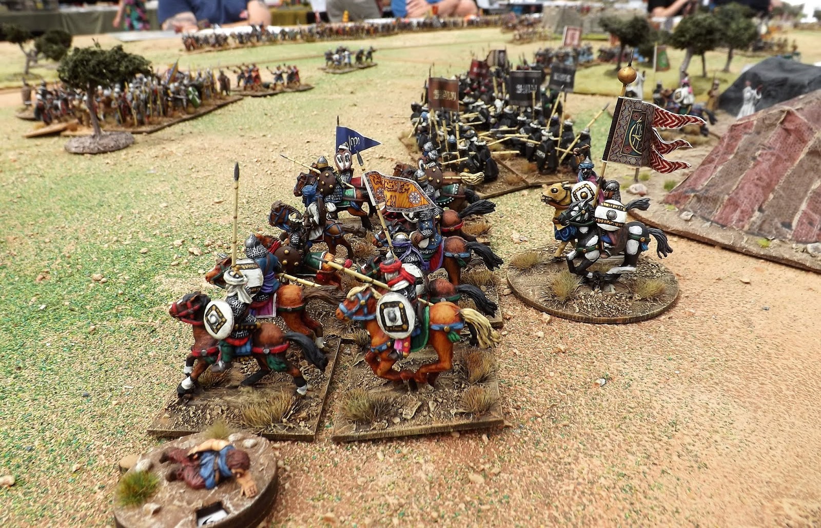 One of the suggestions was a 28mm El Cid style game and the figure options we could use, so you can imagine Tom and my pleasure to stop and look at this lovely game from that era with some stunning figures on view.