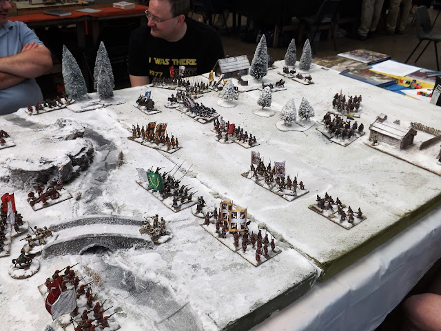 Some lovely figures on display and a table that really captured the spread out nature of this battle with many units separated from their neighbours by the broken terrain.
