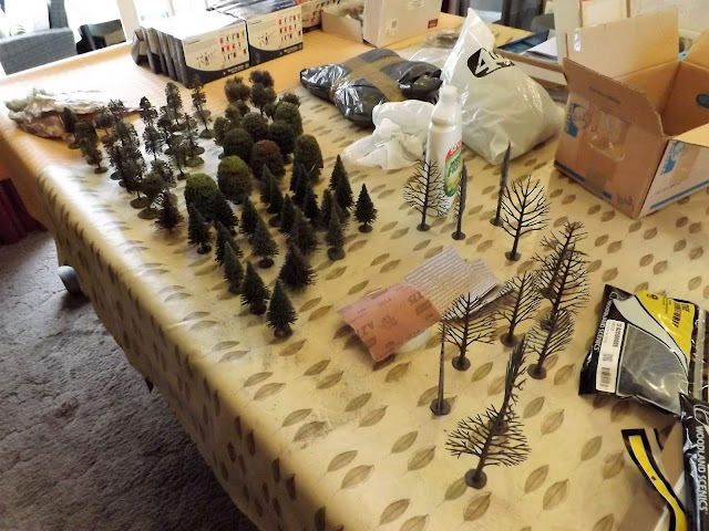 So far half my trees have a new substructure of horsehair and about a third of them have had their new foliage put on which was a very satisfying job but I ran out out of leaf scatter so will need a another trip into town and my local model shop to resupply.