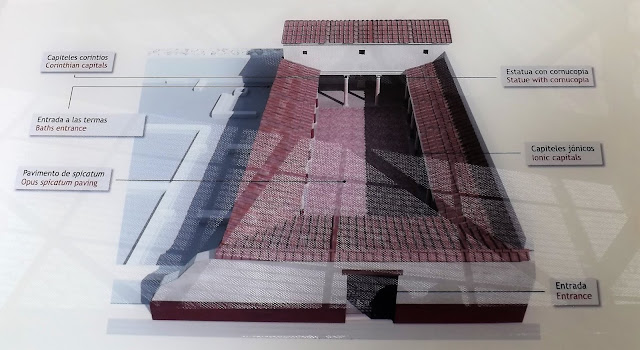 As with most Roman sites across the empire, these buildings have often gone through several rebuilds as the use has changed from one century to another or the building has been adapted and converted so I have included many of the excellent sign boards that were dotted around the complex which also help to explain what it is you are looking at and these together with the artists illustrations also posted can help more than words to bring the archaeology to life.