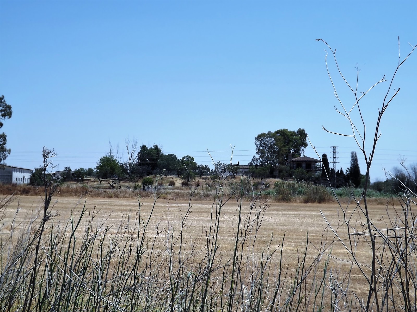| The remains of the woodland that separated the old farm from the Alberche river can be seen to the rear of the buildings |
