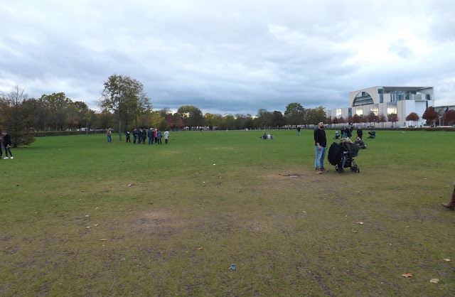 Sadly the autumnal evening was drawing in by the time we reached its new position just a few yards from its original one. The light didn't really allow for a look at the generals and notable people that figured in his eventful life, that are represented around the plinth, and so I settled for the image of the King that loomed large in the history of modern Germany and Berlin standing out in the evening of a late autumnal sky.