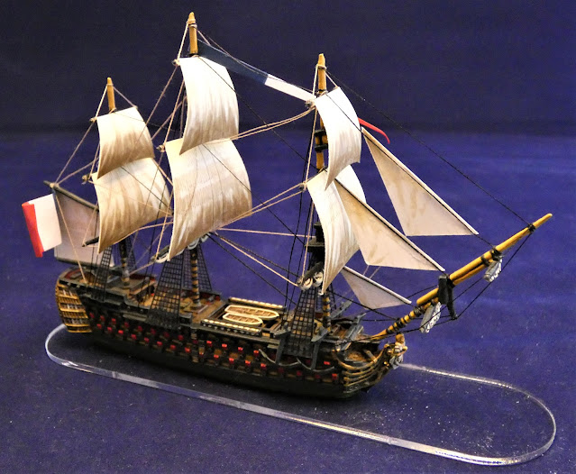 Rather surprisingly the lead frigate, Vertu managed to cause several hits on the British third rate and also managed to include a low score on the D10 that signified a potential critical hit on the rigging of Victorious.