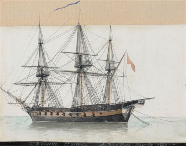 The Spanish 'corvette' El Gamo as depicted by Antoine Roux in 1799 |