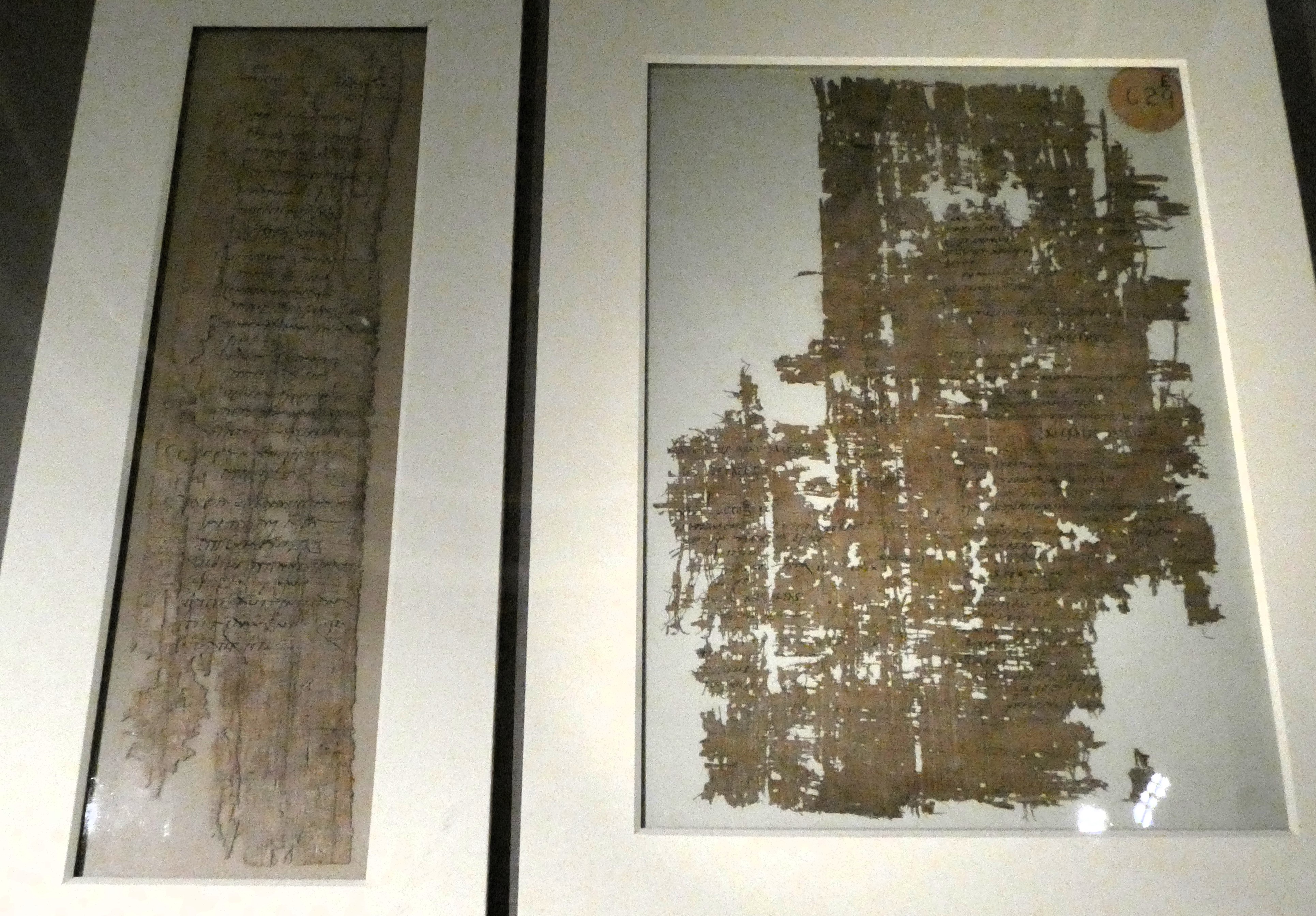 | Papyrus: Left: Al-Bahnasa (ancient Oxyrhynchus), Egypt, after 103 AD. Right: Egypt 105-6 AD |