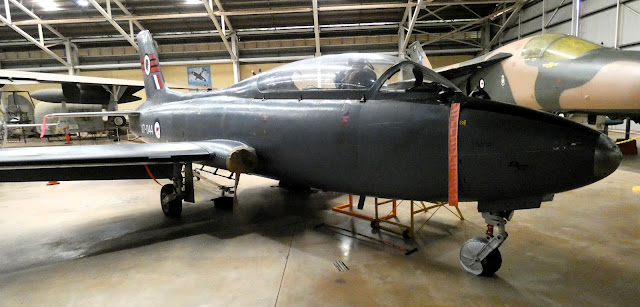 Derived from the North American Aviation F-86 Sabre fighter, the RAAF's CA-27, seen below and above parked under the tail of the B-52, followed the RAAF's first jet fighters in the post-war era, the de Havilland Vampire and Gloster Meteor, recently looked at in my previous post from the Newark Air Museum, link below.