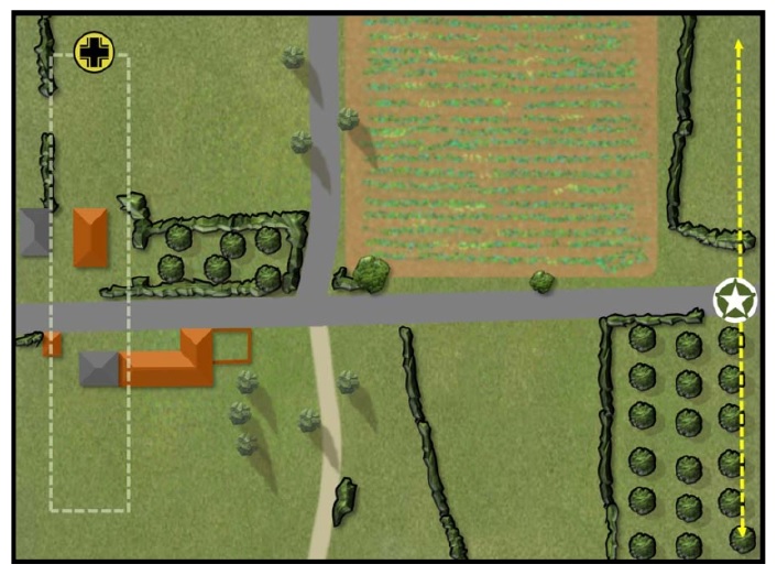 | Witzig's glider men advance towards the houses making use of cover and the mist |