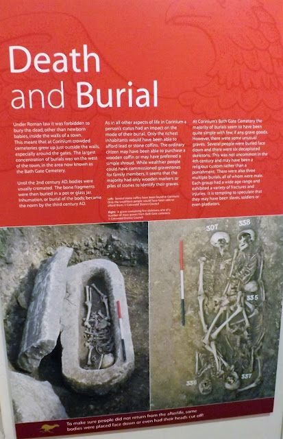 It was forbidden under Roman law to bury the dead within town walls and thus burial areas grew up along a road leading out from one of the gates, in Cirencester this was Bath Gate near the amphitheatre, where many of the finds were made.