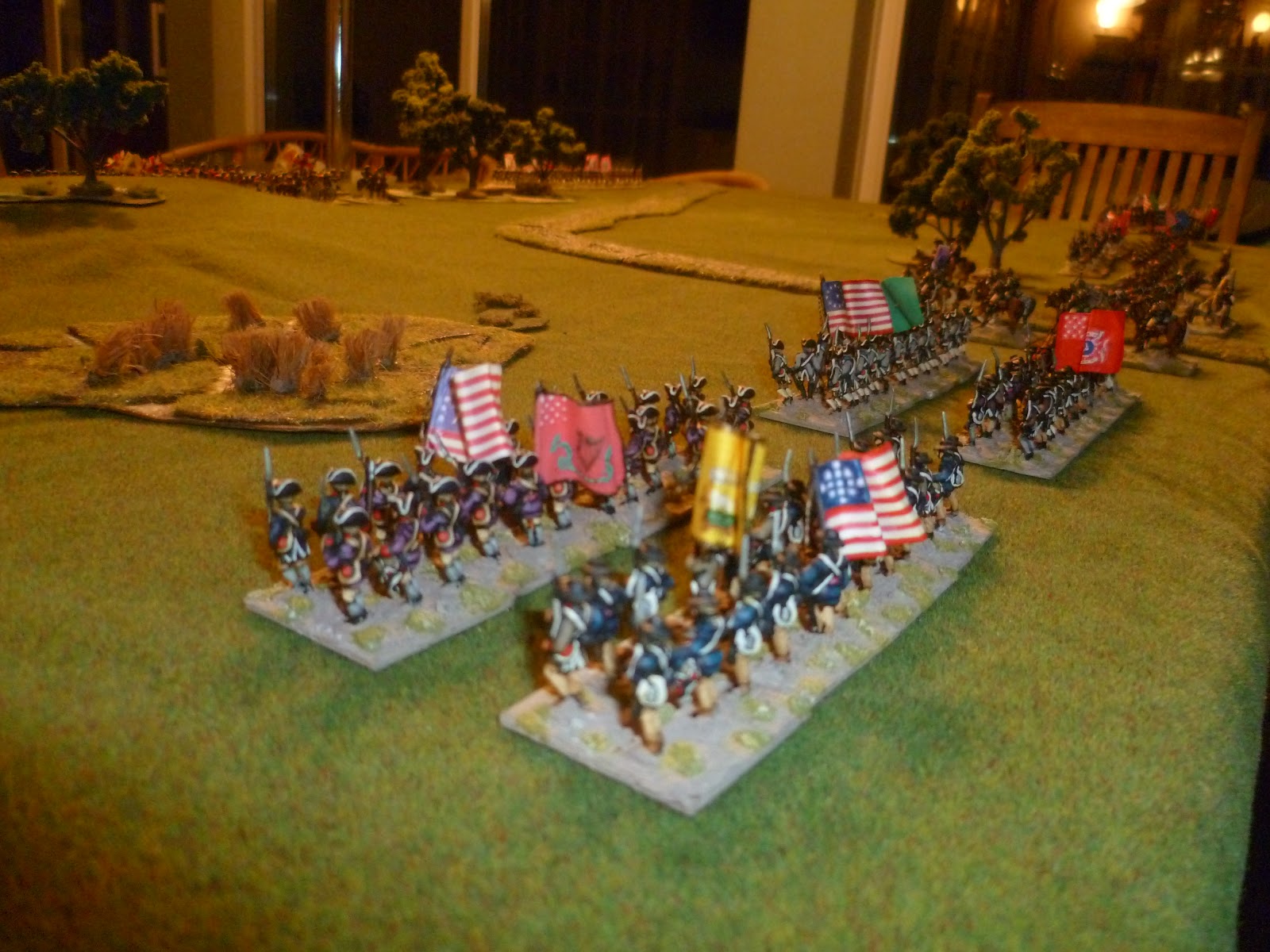 So in WTP when two forces engage in a battle the weaker side would get 12 units built around the army lists. The stronger side would get any number of units from 13-18 depending on its strength advantage. Then other considerations can add further units to each force, who has State Militia, British National Advantage, Von Steuben doing his magic etc. Both armies will eventually have between 13 to 20 units. You can change these numbers if you wish as long as you stick to the ratio. So for instance you could go 16:24, 18:27 etc according to your whim.
