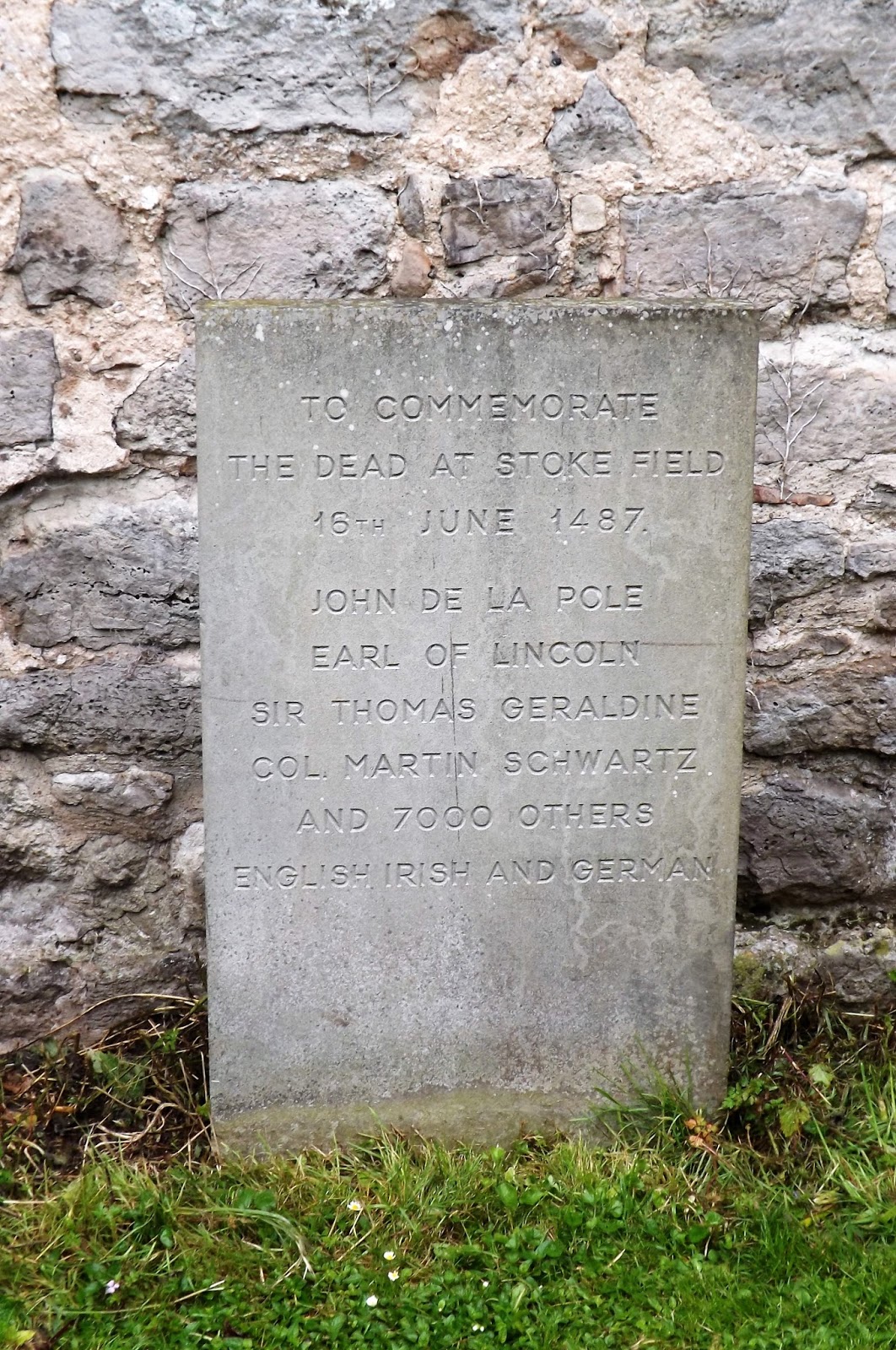 The memorial stone to the Battle of Stoke in the local church close to where