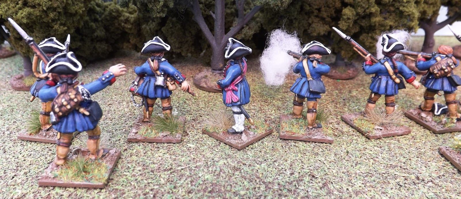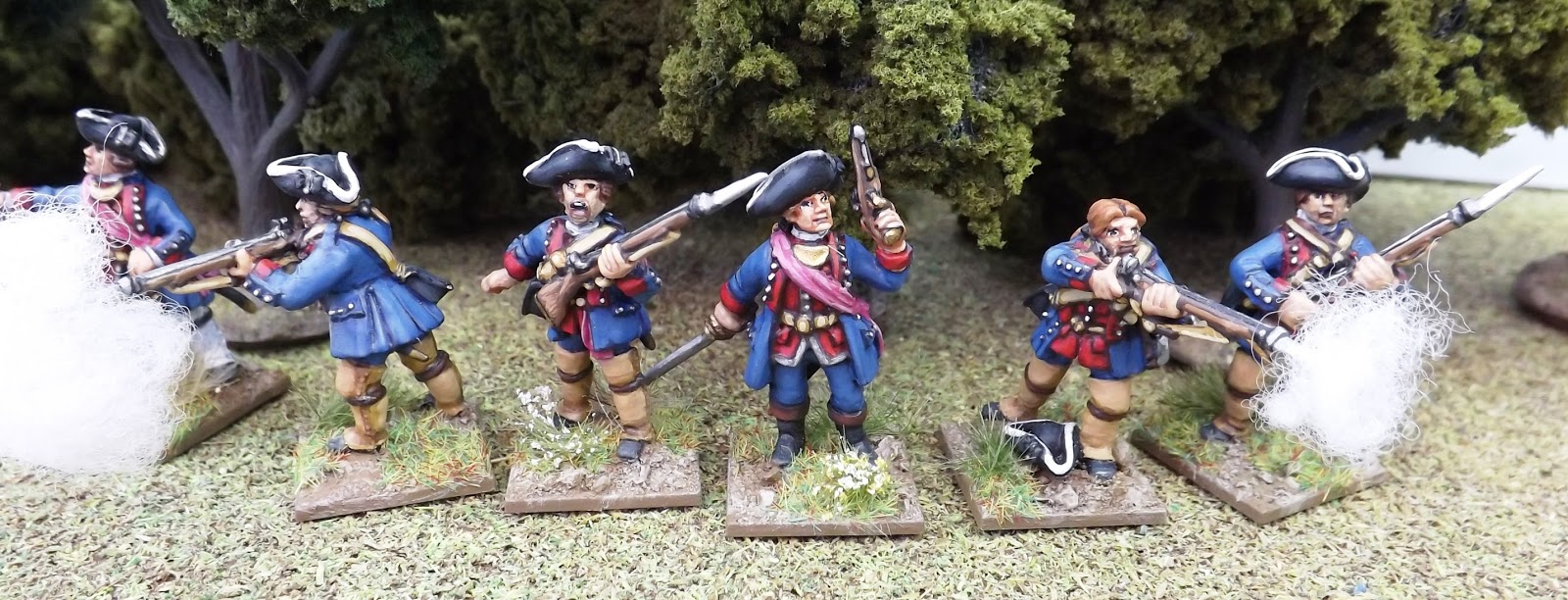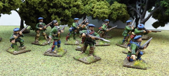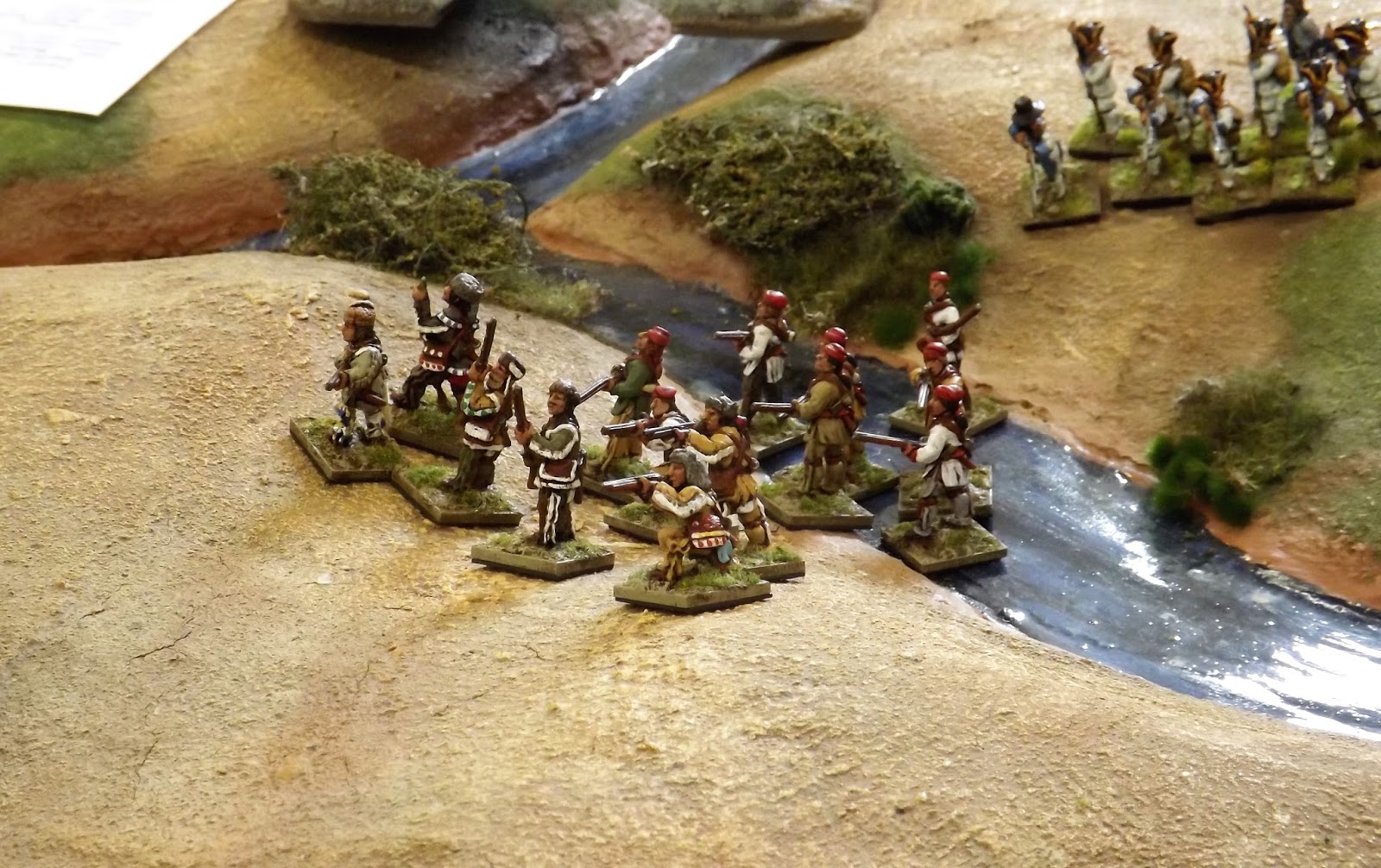 As an example I ended up commanding a group of ten Militia, eight locally raised Irregulars and eight Indians, with the task of securing a wagon in the opposite half of the table and dragging it back into French lines.