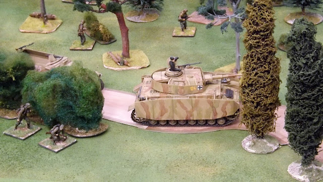 There is a modern trend to wargame WWII and indeed Cold War in scales that would seem to be a bit to big when you consider the range potential of the weapons involved. That said you can't deny the attractiveness of these large models and so they deserve to be included as the great painting immediately drew my attention as I passed by.
