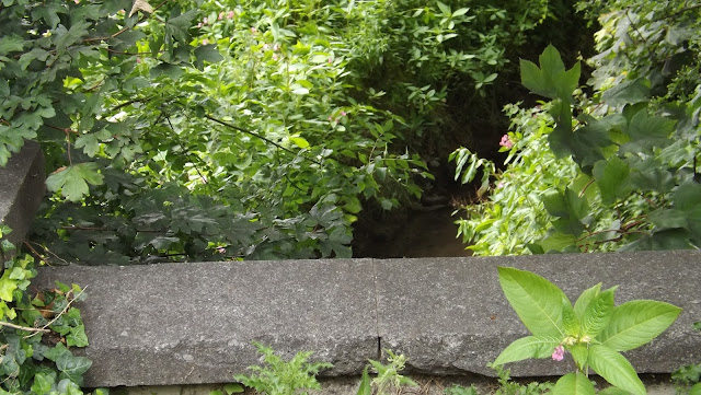 There are no signs on Battle Flats and the road simply winds its way across open ground with a disused railway embankment running parallel to it, and so it was back to the map to look for that little beck indicating the supposed position, which would need a channel to go under the road. That was when I saw the little railing above the tiny bridge over the culvert, practically hidden among the summer verge.