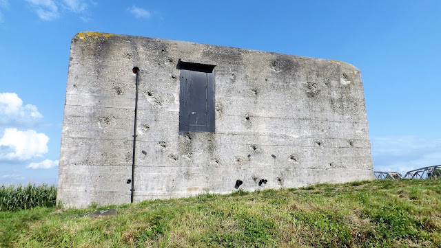 | Bunker B shown on the aerial picture above, well and truly brassed up by German fire from 1940 |