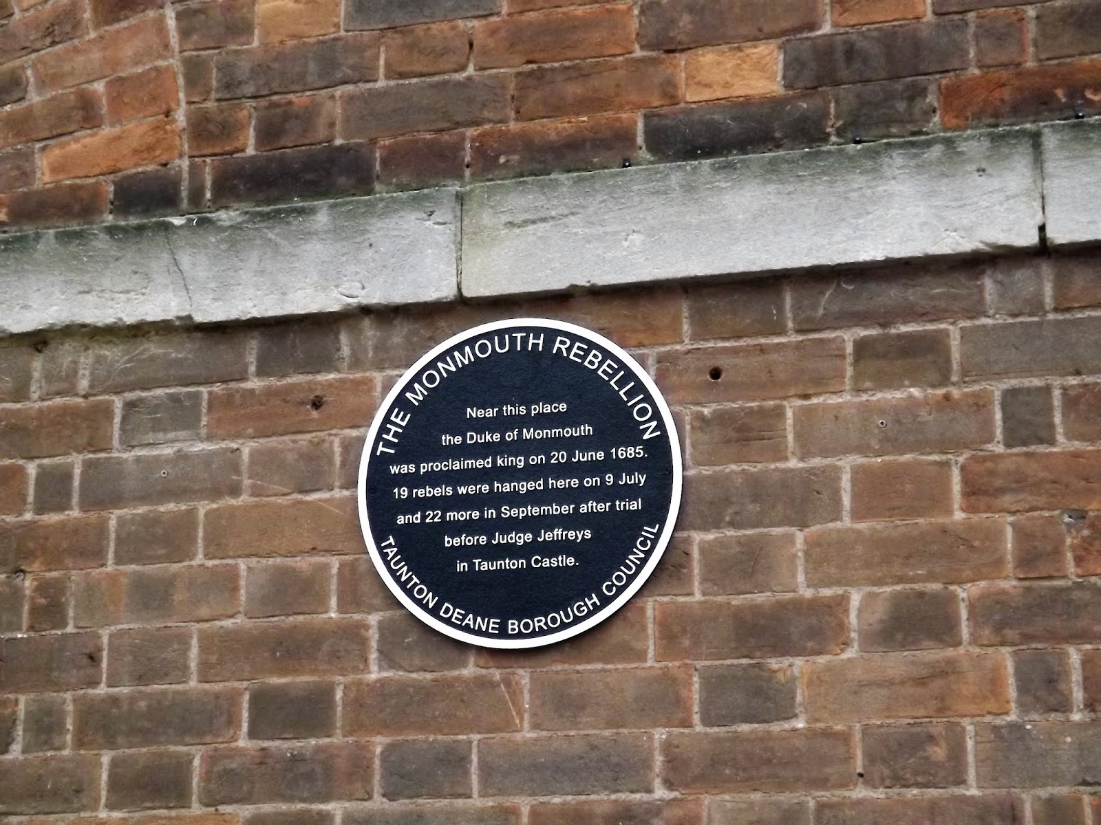After landing at Lyme Regis in Dorset to local popular acclaim, James Scott, 1st Duke of Monmouth, the eldest illegitimate son of King Charles II, marched through Somerset gathering supporters to his army and arrived in Taunton in June 1685 declaring himself King on the 20th in the town; and condemning it to be one of the key centres for James' retribution following Monmouth's defeat at Sedgemoor on the 6th of July, with the establishment of the 'Bloody Assizes' in the court of 'Hanging' Judge Jeffreys held in the Castle Great Hall of Taunton.