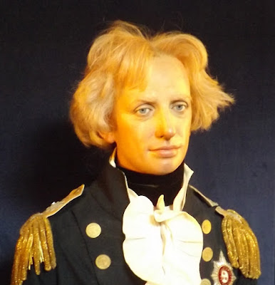 | The wax cast of Nelson based on contemporary images of the man, so vividly captures his appearance. My photo taken on our recent visits to Portsmouth. |