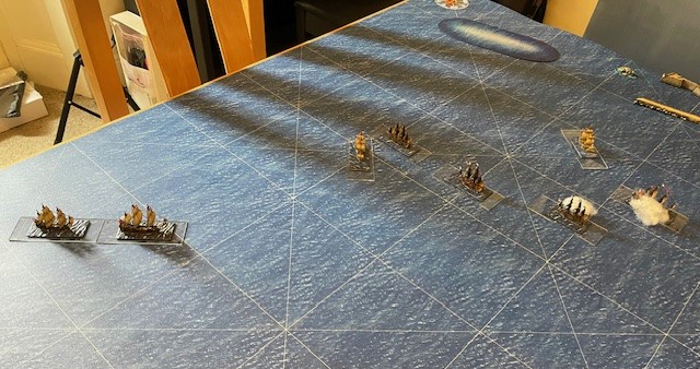 The weather changed in turn 5, with the wind increasing to 4 and seeing Badiley tacking successfully to avoid the Meloria Shoal, whilst his comrade Appleton managed to turn his squadron astern of the Dutch, and in the following turn exchanging long range fire with the Dutch rear to no effect.