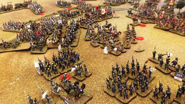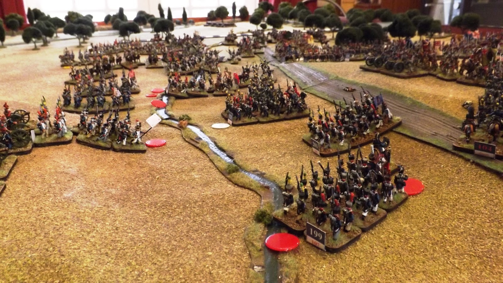 As with the historical action we commenced our game at 14.00 as the French artillery along the line opened up a tremendous barrage that presaged their attack. Leval ordered his troops to advance en colonne serree, columns that would keep their companies closed up on the ones in front. This kept them easier to control and keep in order but more difficult to deploy should the need arise.