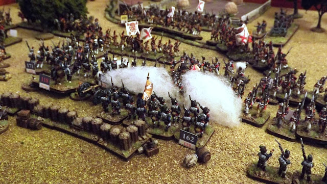| The bigger guns add their fire in support of the skirmishers as both sides try to soften each other up |