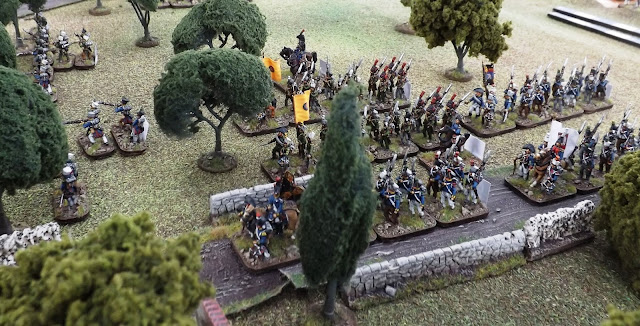 | The French skirmish lines keep the Allies pinned as the German columns start to deploy from the olive groves |