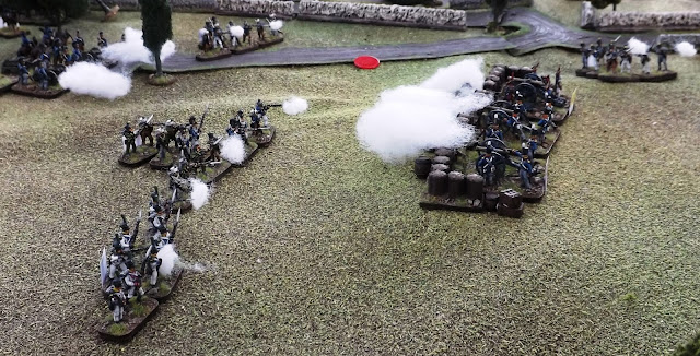 | The battle "hots up" as the Baden guns come into action in support of their skirmishers |